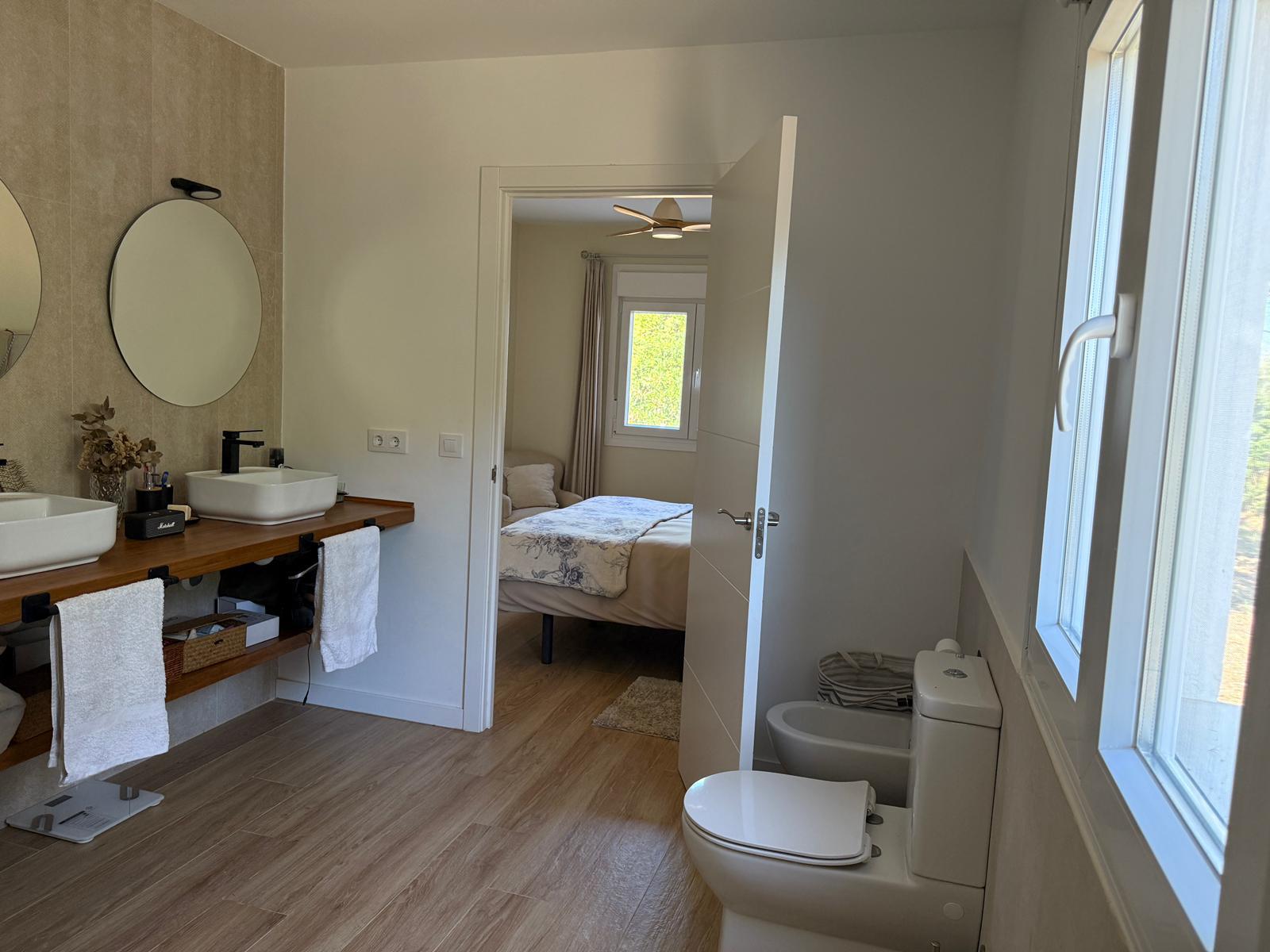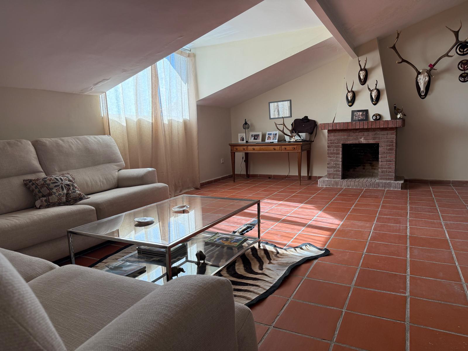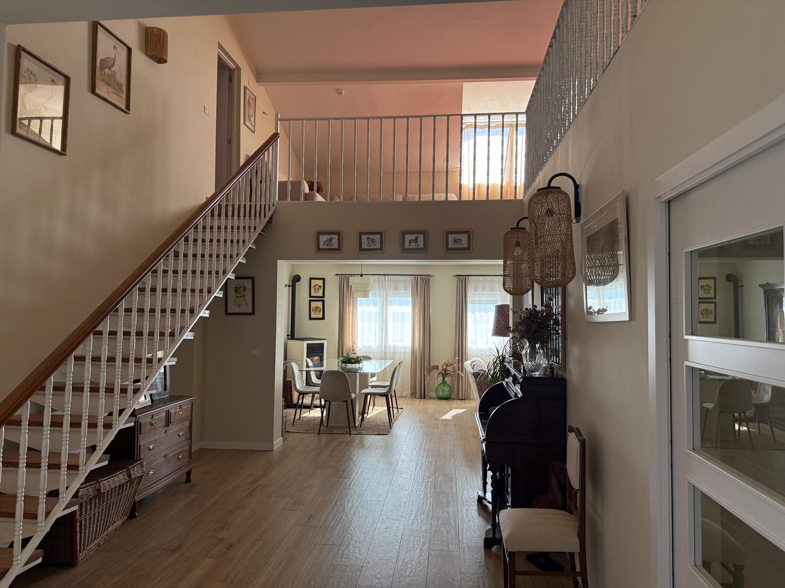 En la planta superior encontramos un segundo salón, dos dormitorios, un baño, un aseo, zona de lavandería y salida a una amplia terraza. También cuenta con espacio destinado a almacenaje de herramientas y mantenimiento de la parcela.
