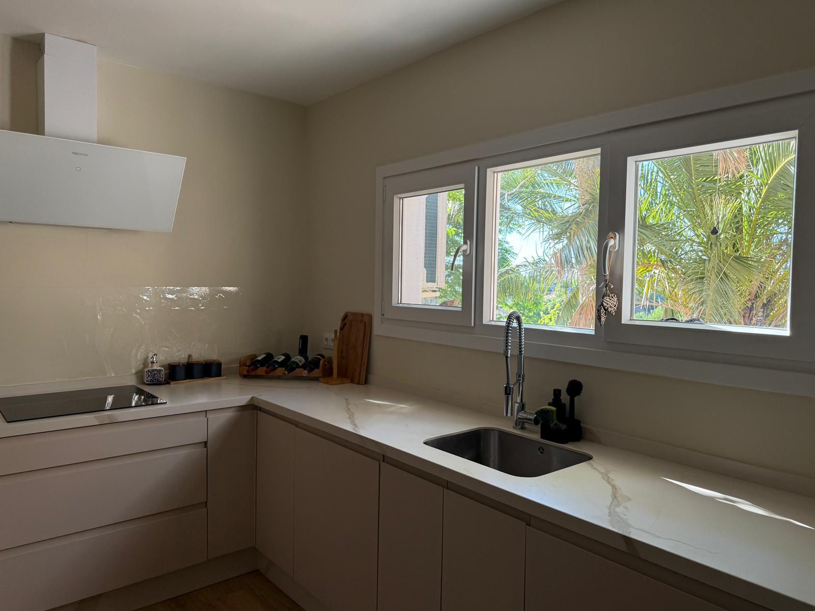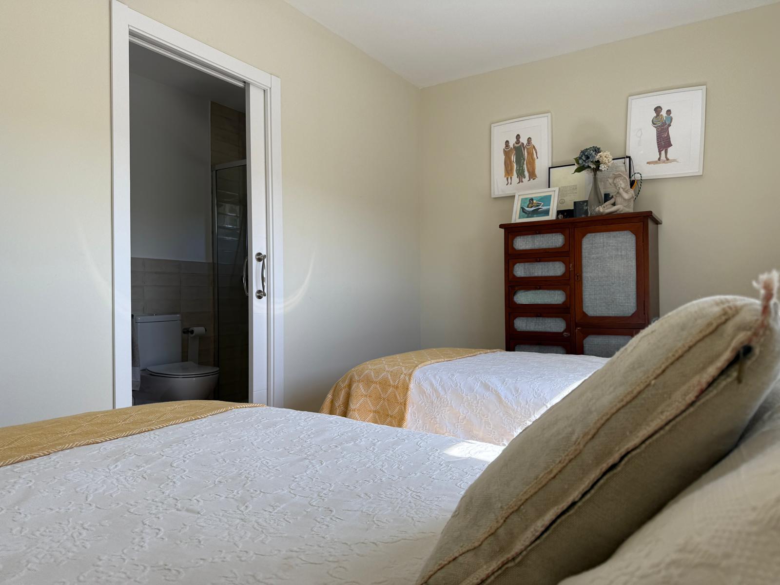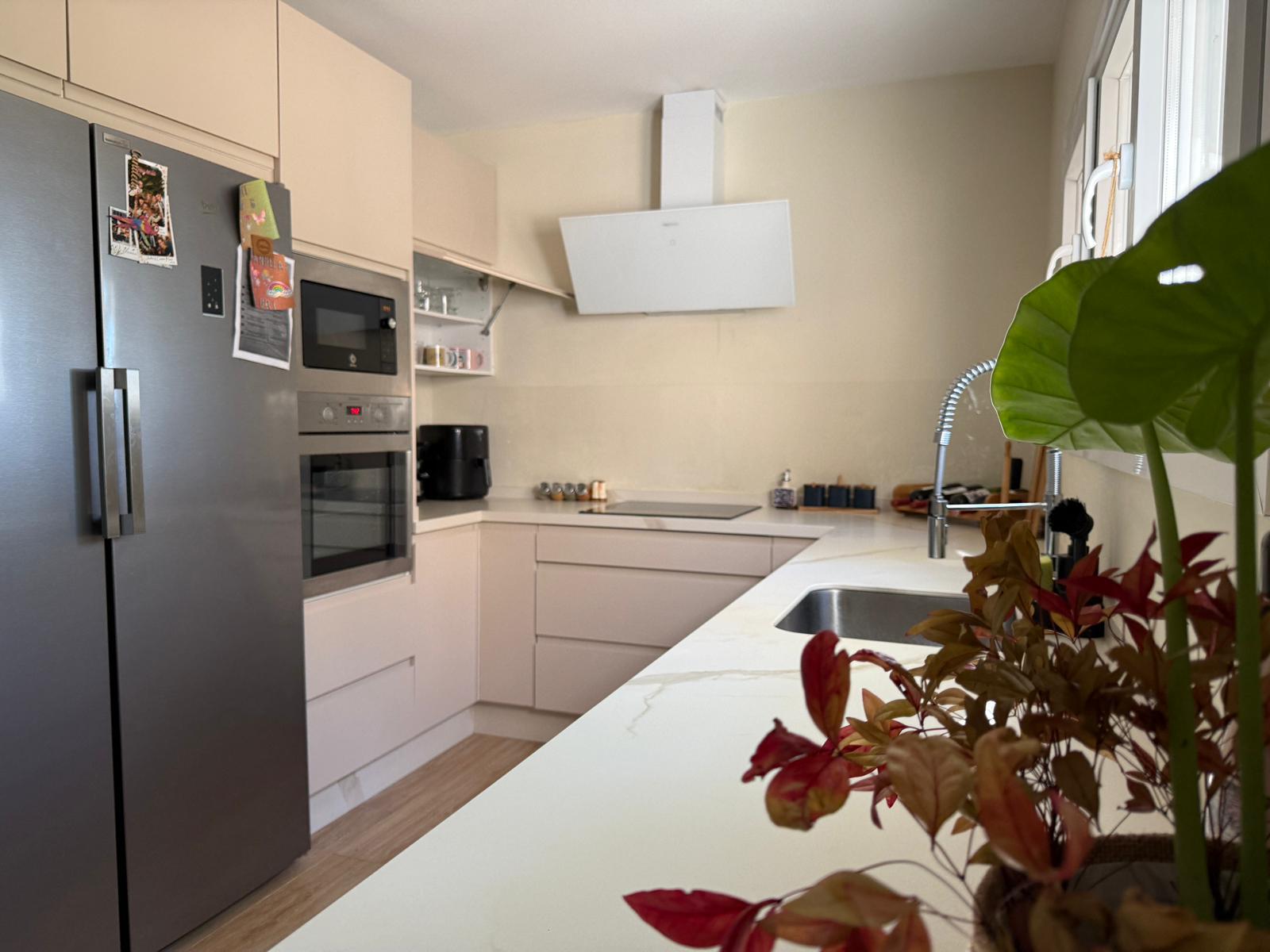 En planta baja dispone de un amplio hall de entrada, salón-comedor de gran tamaño, cocina completamente amueblada y equipada con zona de comedor, dos dormitorios (uno de ellos tipo suite con baño incorporado), además de un baño y un aseo.