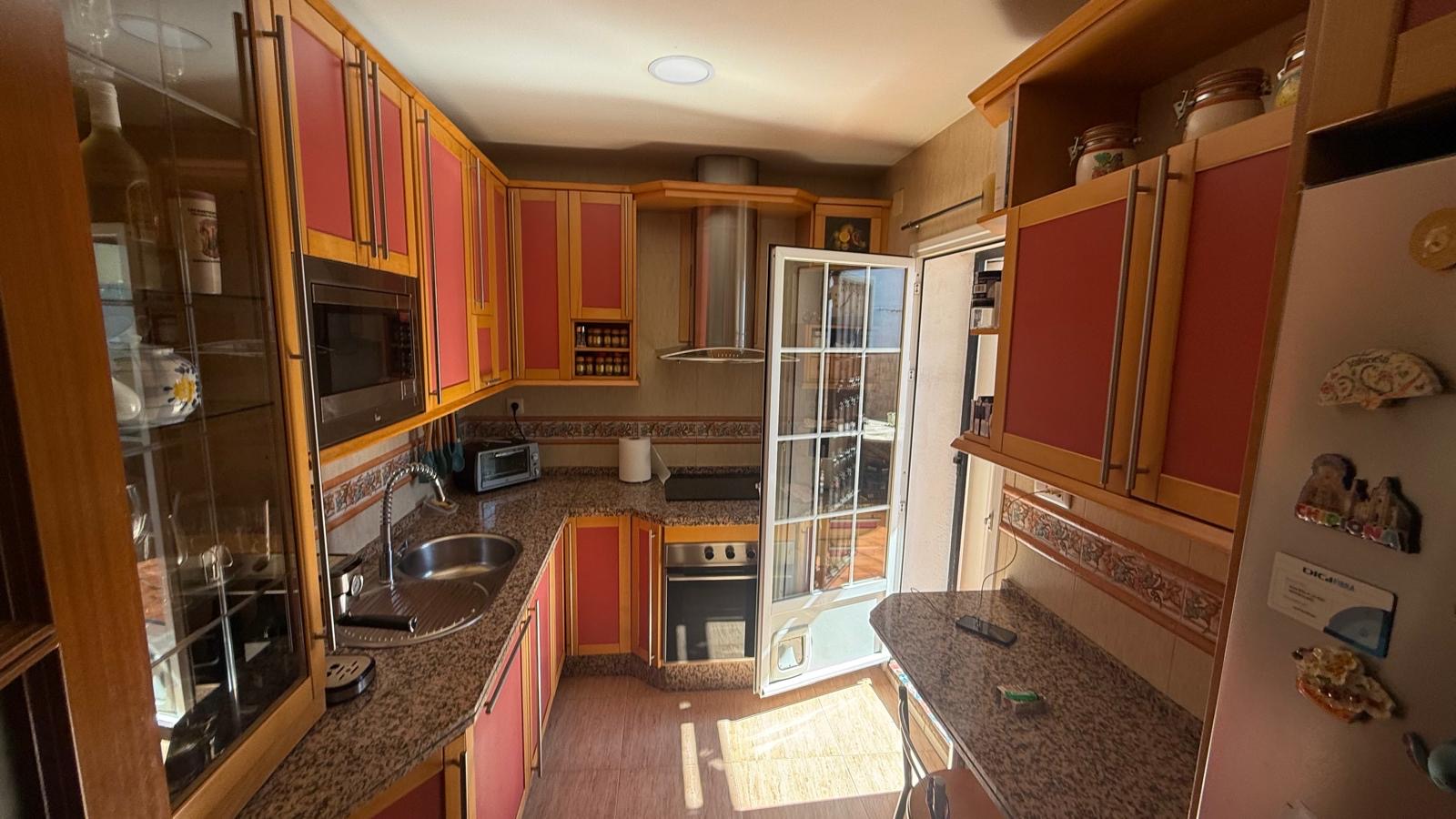 La vivienda cuenta con una gran cocina equipada, con salida a un patio individual, ideal para uso diario. El salón, amplio y luminoso, crea un ambiente acogedor gracias a la luz natural que recibe.